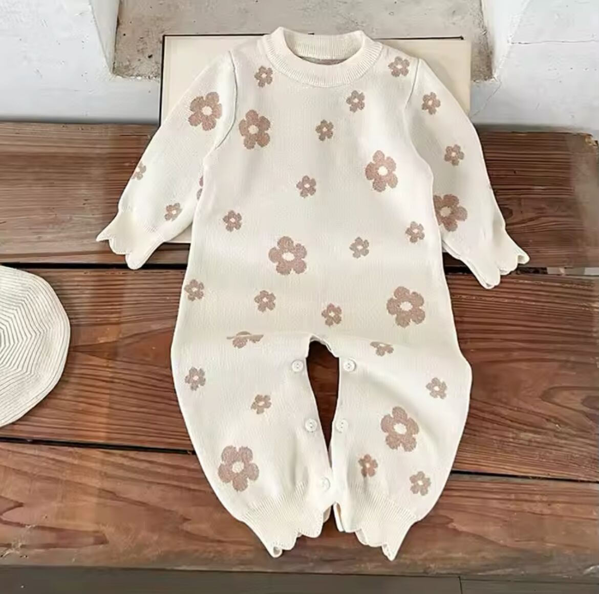 327 フラワーニットロンパース